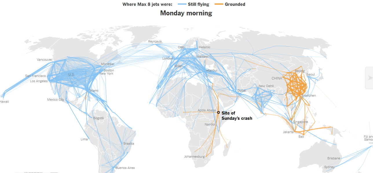 最近几个月,波音公司(Boeing)全新的737 Max飞机发生了两起诡异的相似事件:周日,埃塞俄比亚航空(Ethiopian Airlines)一航班在从亚的斯亚贝巴起飞后坠毁,造成157人死亡,而去年10月,印尼狮子航空(Lion Air)另一起空难则造成189人死亡。